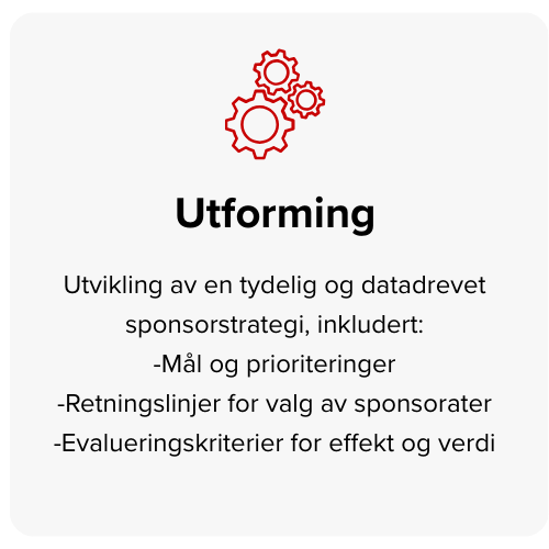Vi bistår med alt fra overordnet strategiutvikling til operativ testing og evaluering av sponsorater. Du velger selv hvor omfattende prosessen skal være – vi kan bidra i enkeltfaser eller ta helheten fra A til Å.